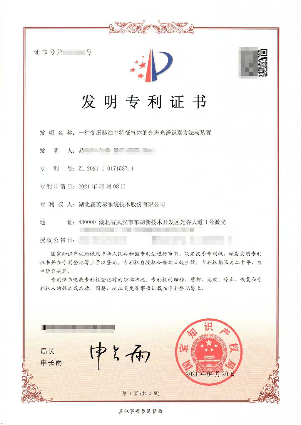 Genuine spectroscopic technology enterprises must have laid out relevant patents in the fields of optical design, laser modulation, acoustic detection, spectroscopic algorithm and so on. Take Hubei Infotech System Technology Co., Ltd. as an example, it has more than 40 authorized patents in the field of photoacoustic spectroscopy gas detection, covering core technical links such as degassing, light source modulation, resonant cavity design, photoacoustic cell design, photoacoustic spectroscopy identification, filtering algorithm and interference elimination, which is an inauthenticable hard technical strength. It is specially noted that all DGA products applied in the current market involve a degassing process, so the nature of spectroscopic technology cannot be judged by degassing technology alone.